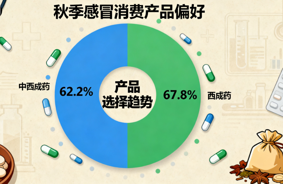 在秋季感冒相关消费中,产品选择呈现明显偏好:“中成药 / 中药冲剂”(67.8%)因 “副作用小、适合日常调理” 更受青睐,远超 “西药感冒药”(32.2%);“便携装润喉糖”(58.3%)、“一次性口罩”(76.5%)等辅助用品因 “方便携带、即时防护” 成为高频消费品类。
