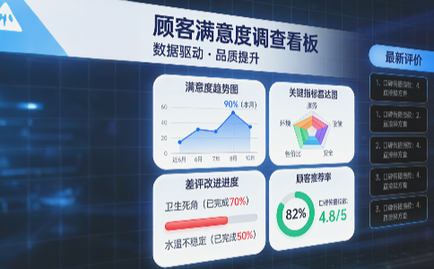 洗浴中心的竞争已从“硬件设施”转向“软性服务”。通过满意度调查看板,企业不仅能洞察顾客需求,更能将数据转化为行动,打造“超预期”体验。未来,随着AI与物联网技术的融合,看板将进一步实现智能化预测(如预判设备故障、个性化服务),助力行业迈向更高水平。