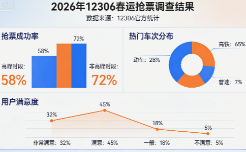 春运启幕,抢票先行。2026年春运自2月2日启动至3月13日结束,共计40天,全国铁路预计发送旅客5.39亿人次,再度迎来全民抢票热潮。为了解12306春运抢票实际情况、用户体验及核心痛点,我们开展春运抢票调查,覆盖全国28个省市1200名受访者,结合12306官方披露数据与便民举措,形成本次春运抢票调查结果,为广大旅客购票提供实用参考,解读抢票核心技巧与常见误区。