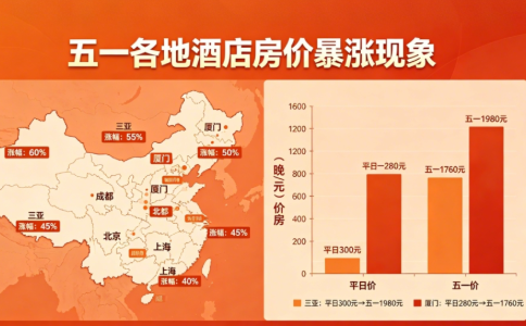 随着2026年五一假期临近,国内旅游市场持续升温,五一假期旅游产品预订量同比增长127%,预计出游人次突破3亿。与此同时,各地酒店房价普遍暴涨,热门城市涨幅达2-5倍,部分网红民宿涨幅超10倍,引发广泛关注。本报告立足市场数据,剖析房价暴涨的表现、成因、问题及规范建议,为行业发展、消费者出行及监管施策提供参考。
