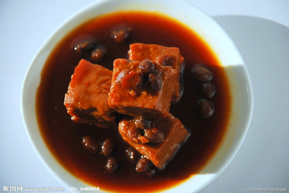 腐乳是我国独创的传统调味品,既可单独食用,也可用来烹调风味独特的菜肴。腐乳的主要原料,就是人们常吃的黄豆。在制作腐乳之前,先要制作豆腐,过程很简单,无非是泡豆、打浆、点卤,然后除去一部分豆清,就成了有点硬度的豆腐。豆腐再切成小块,就是制作腐乳的坯料了。这时候要接种毛霉之类的菌种,豆腐表面就长出一层毛茸茸的霉菌菌丝。对长了毛的白坯进行搓毛处理,最后再盐渍,就成为了腐乳。其实不必害怕,这些菌都是专门筛选过的“善良”菌,不产生毒素,也不会致病。