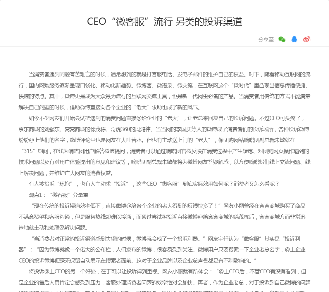 CEO“微客服”流行 另类的投诉渠道