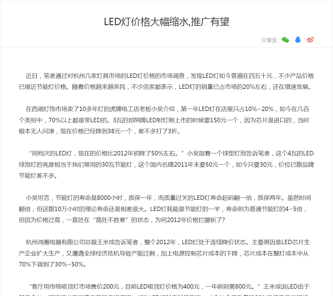 LED灯价格大幅缩水,推广有望