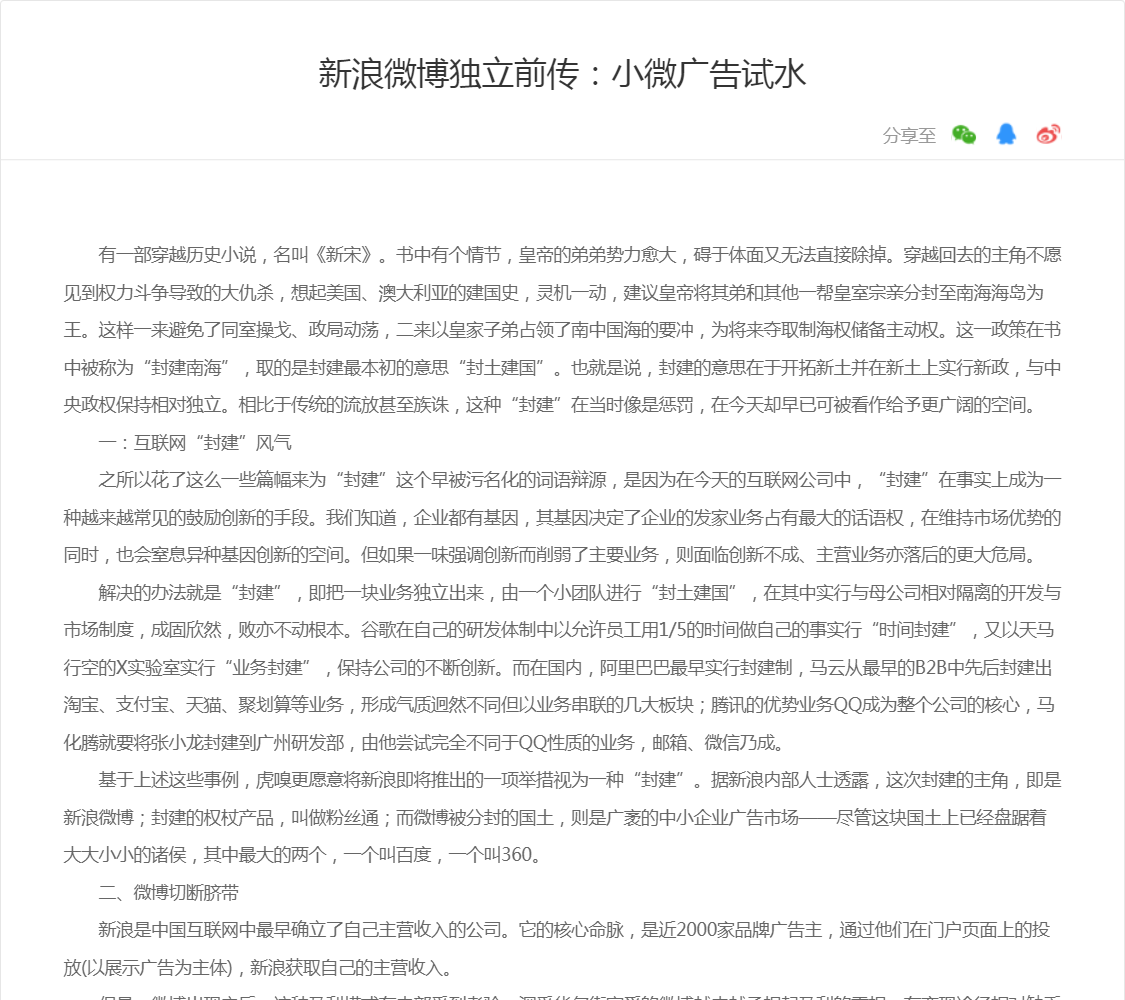 新浪微博独立前传:小微广告试水