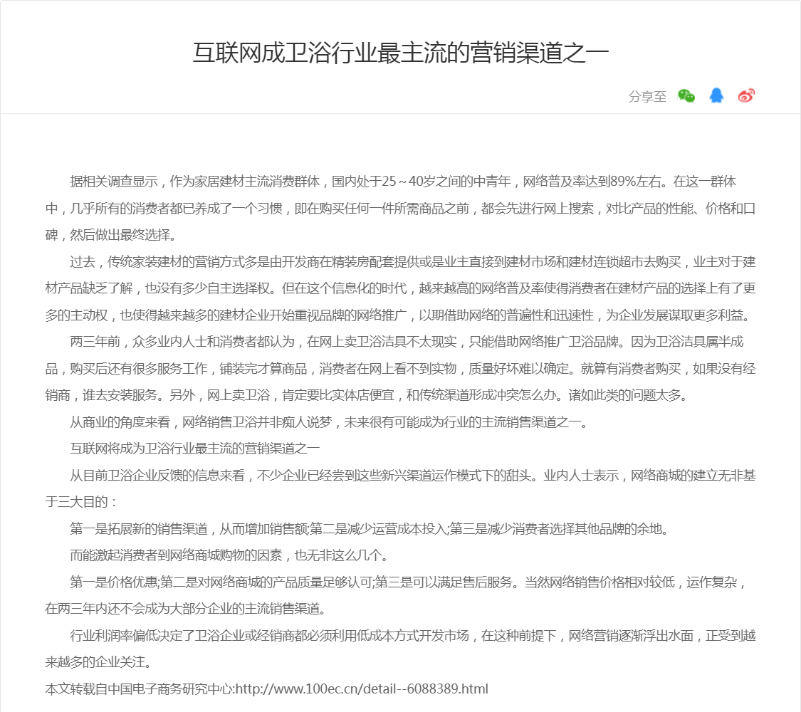 互联网成卫浴行业最主流的营销渠道之一