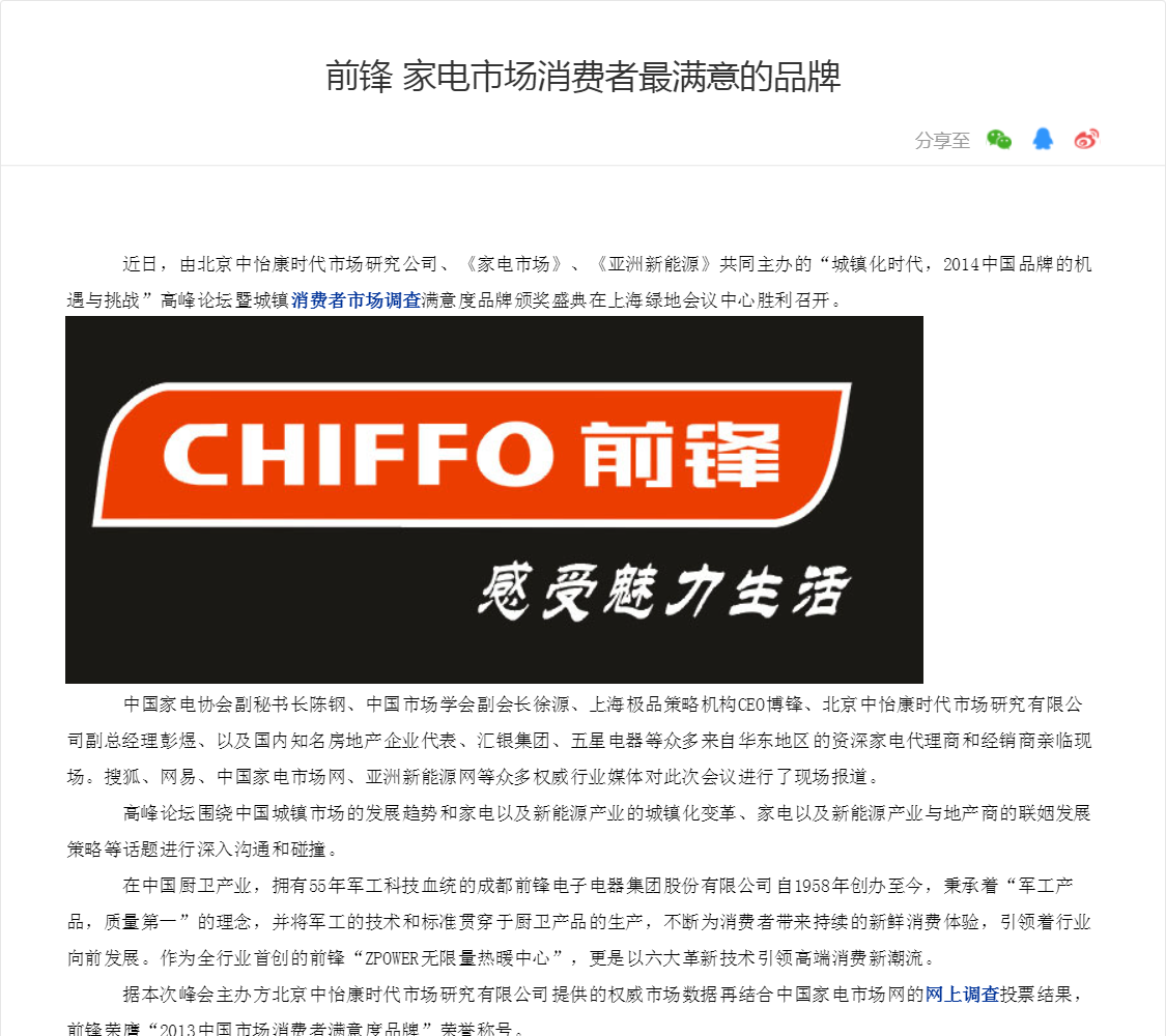 前锋 家电市场消费者最满意的品牌