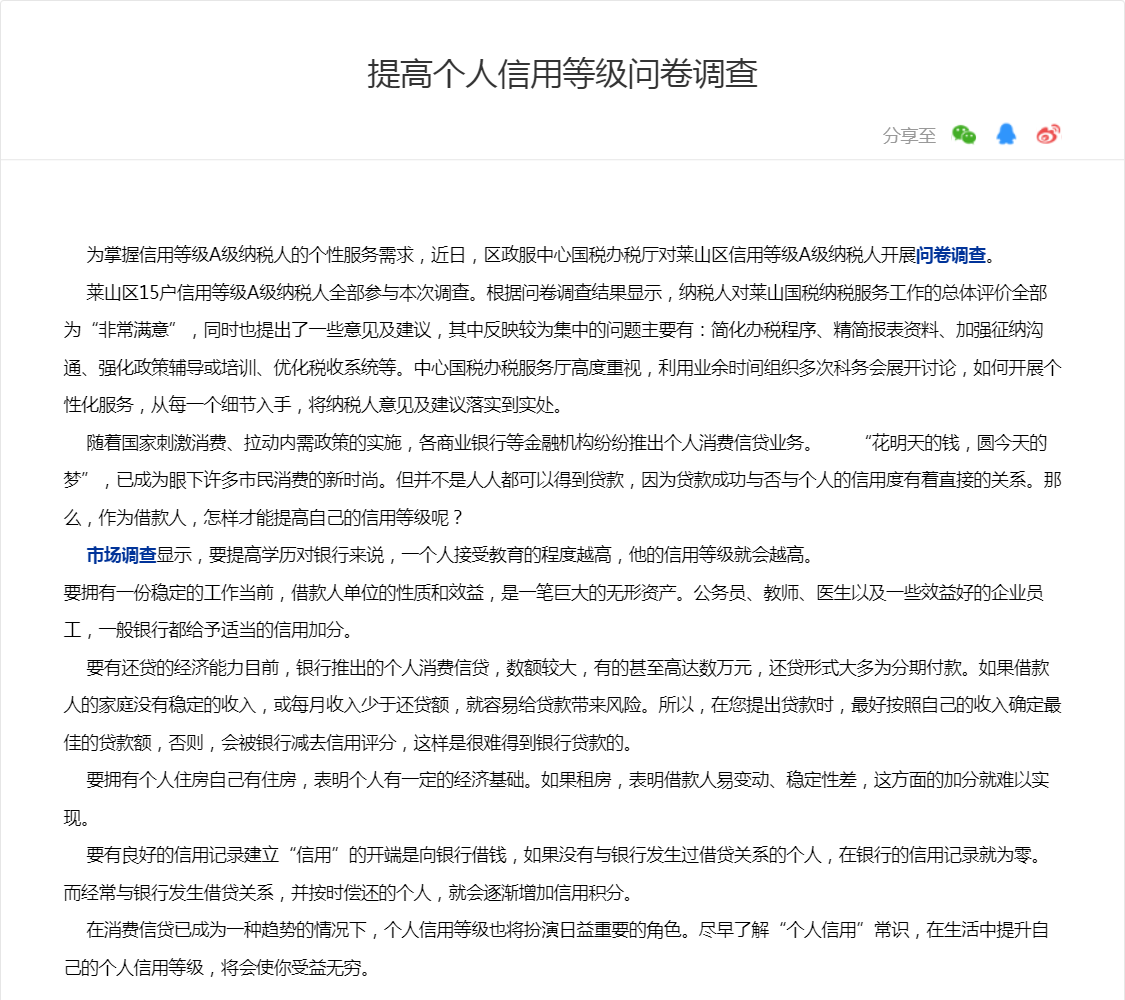 提高个人信用等级问卷调查