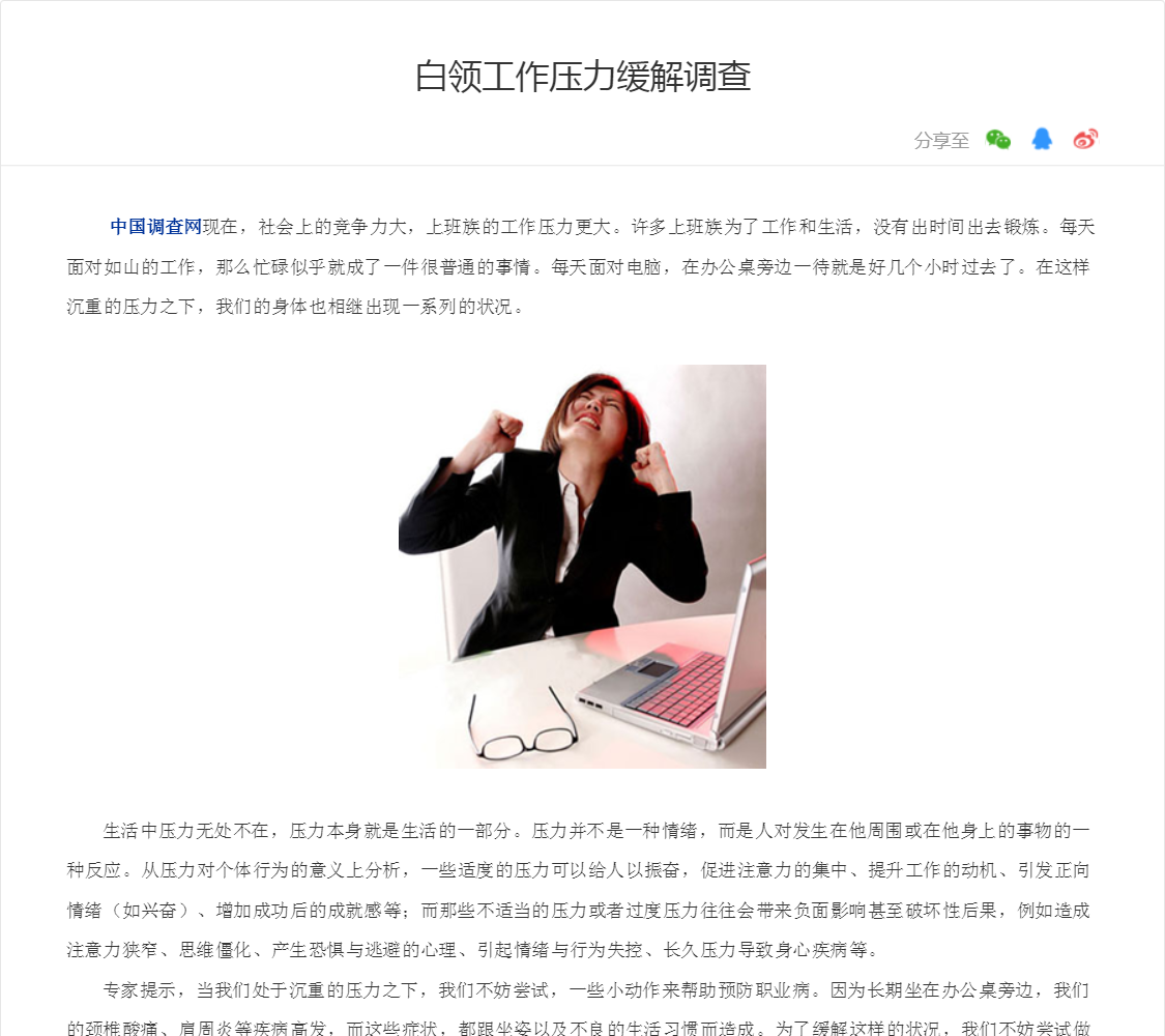 白领工作压力缓解调查