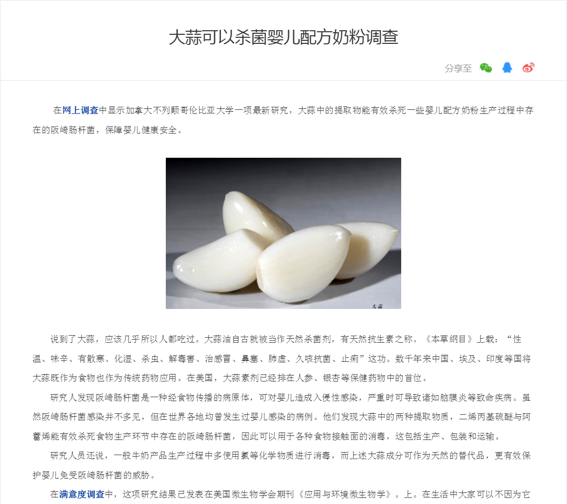 大蒜可以杀菌婴儿配方奶粉调查