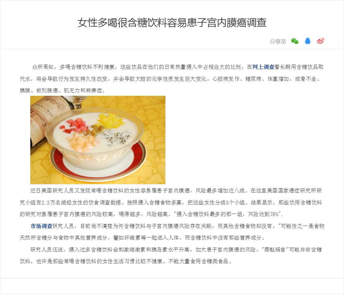 女性多喝很含糖饮料容易患子宫内膜癌调查