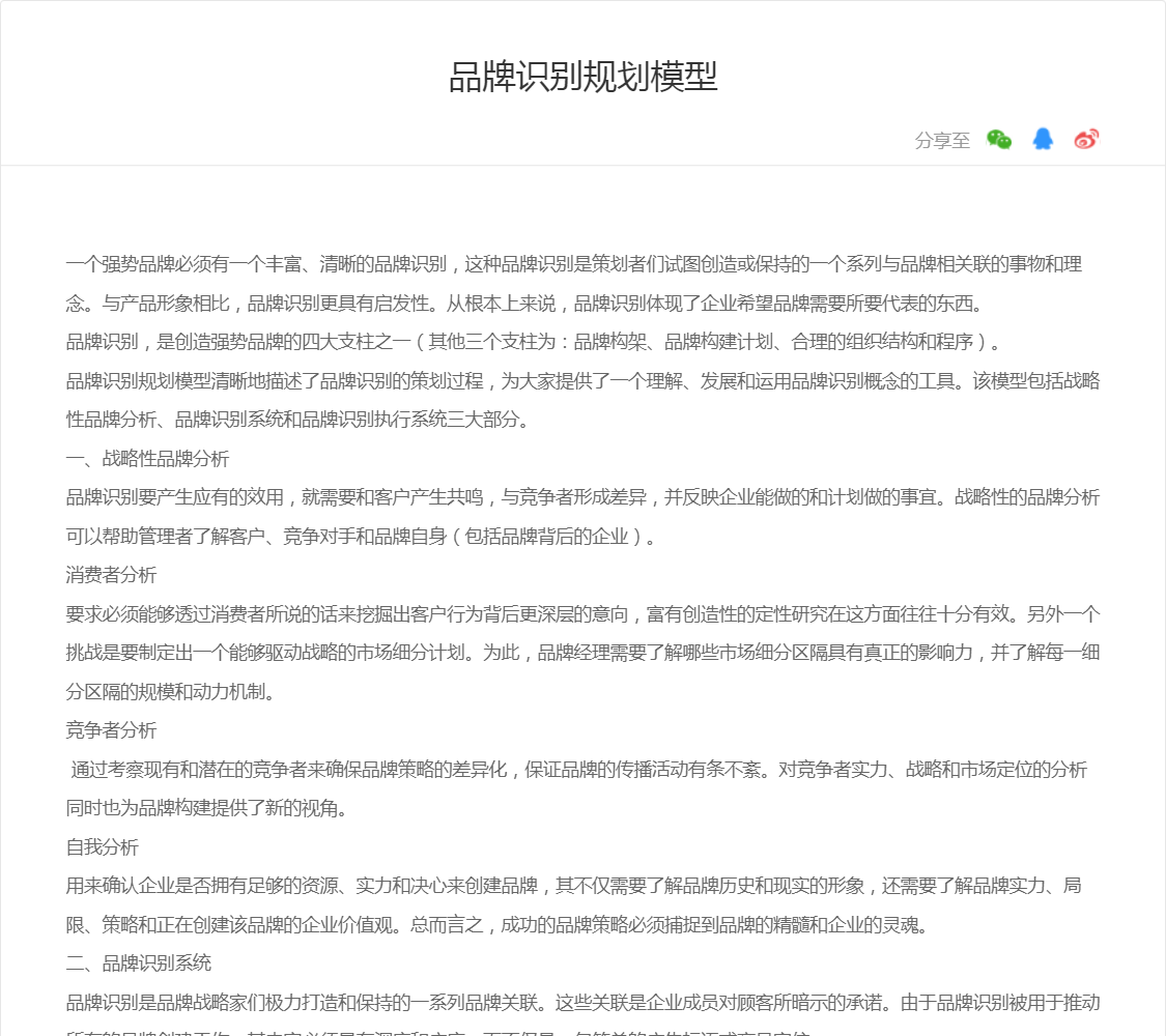 品牌识别规划模型