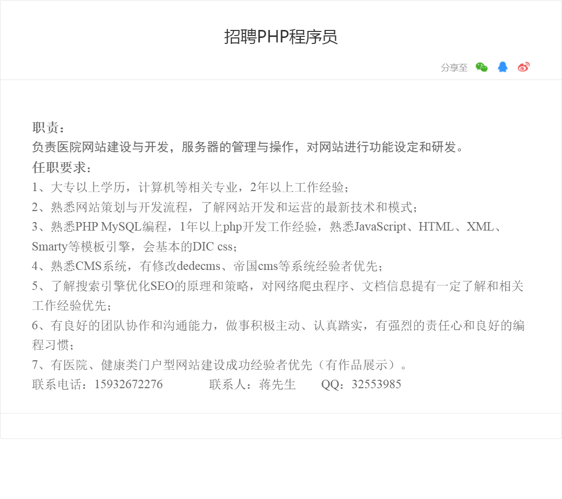 招聘PHP程序员