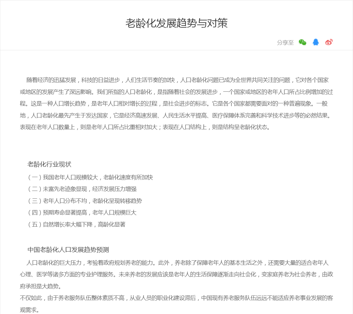老龄化发展趋势与对策