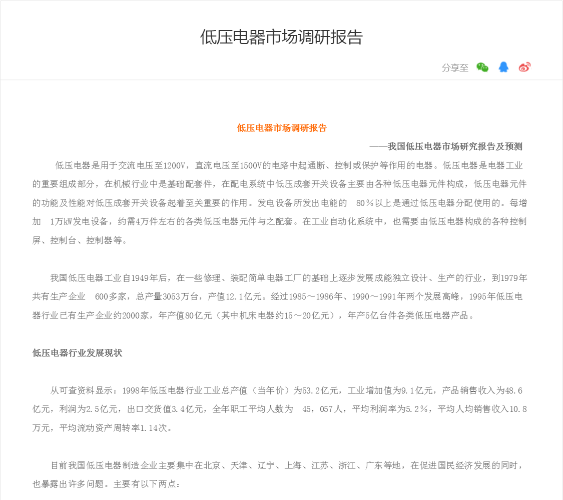 低压电器是用于交流电压至1200V,直流电压至1500V的电路中起通断、控制或保护等作用的电器。低压电器是电器工业的重要组成部分,在机械行业中是基础配套件,在配电系统中低压成套开关设备主要由各...