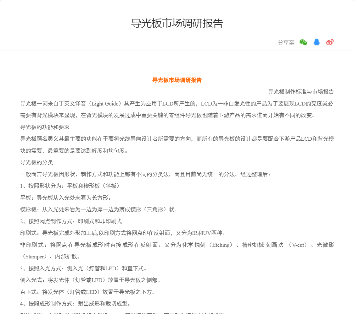 导光板一词来自于英文译音(Light Guide)其产生为应用于LCD所产生的,LCD为一非自发光性的产品为了要展现LCD的亮度就必需要有背光模块来显现,在背光模块的发展过成中重要关键的零组件...