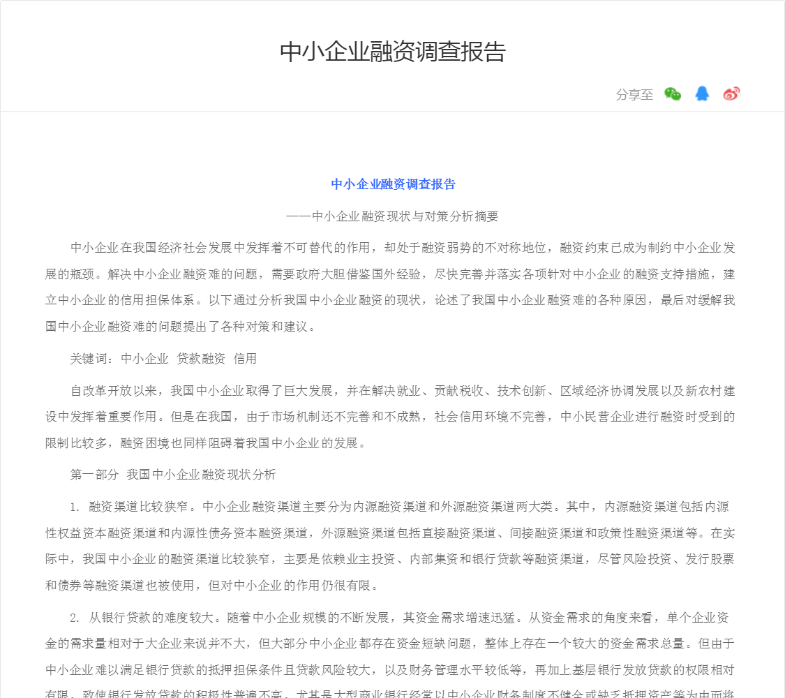 自改革开放以来,我国中小企业取得了巨大发展,并在解决就业、贡献税收、技术创新、区域经济协调发展以及新农村建设中发挥着重要作用。但是在我国,由于市场机制还不完善和不成熟,社会信用环境不完善,中小民营...