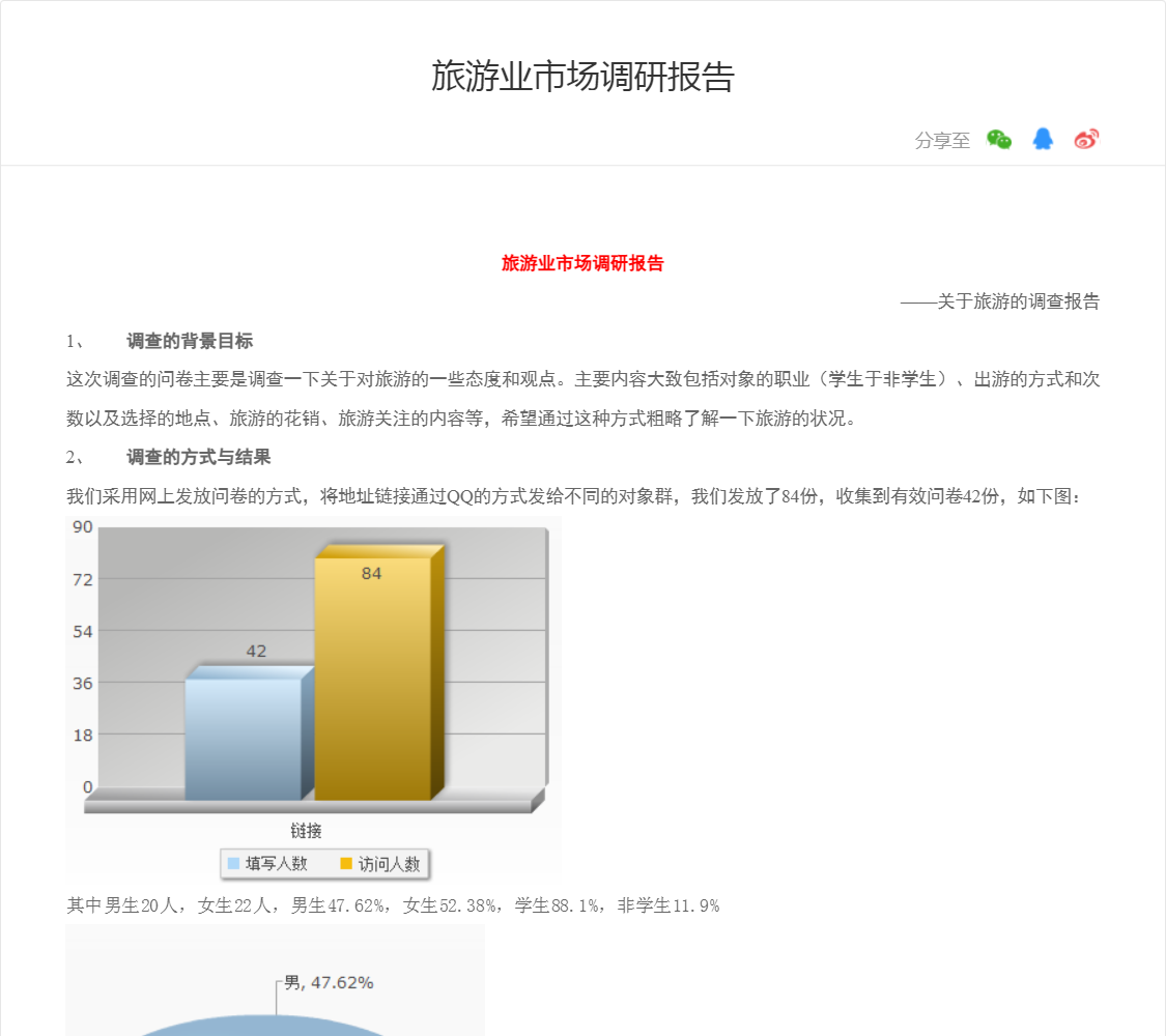 这次调查的问卷主要是调查一下关于对旅游的一些态度和观点。主要内容大致包括对象的职业(学生于非学生)、出游的方式和次数以及选择的地点、旅游的花销、旅游关注的内容等,希望通过这种方式粗略了解一下旅游的状况。