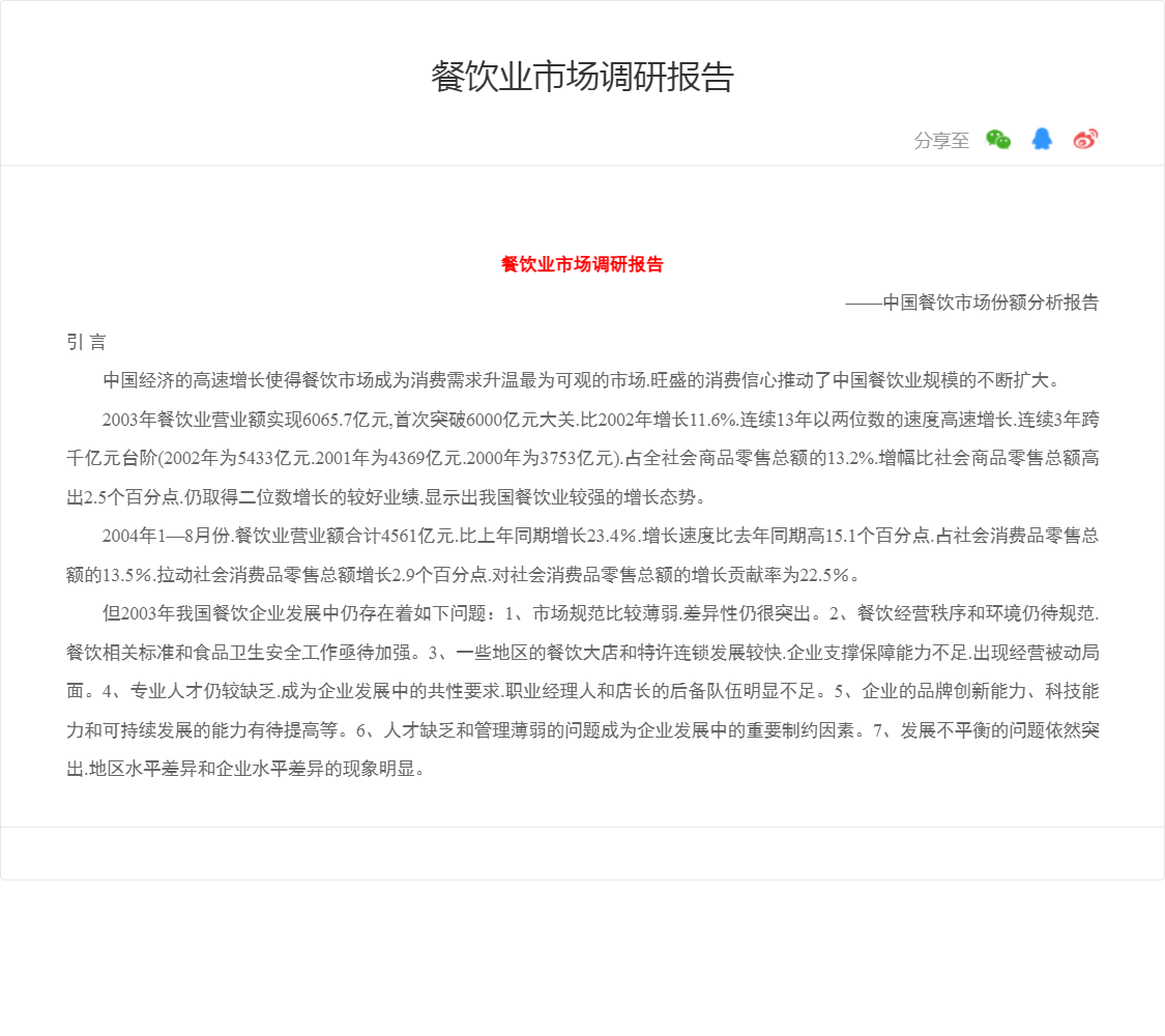 中国经济的高速增长使得餐饮市场成为消费需求升温最为可观的市场.旺盛的消费信心推动了中国餐饮业规模的不断扩大。