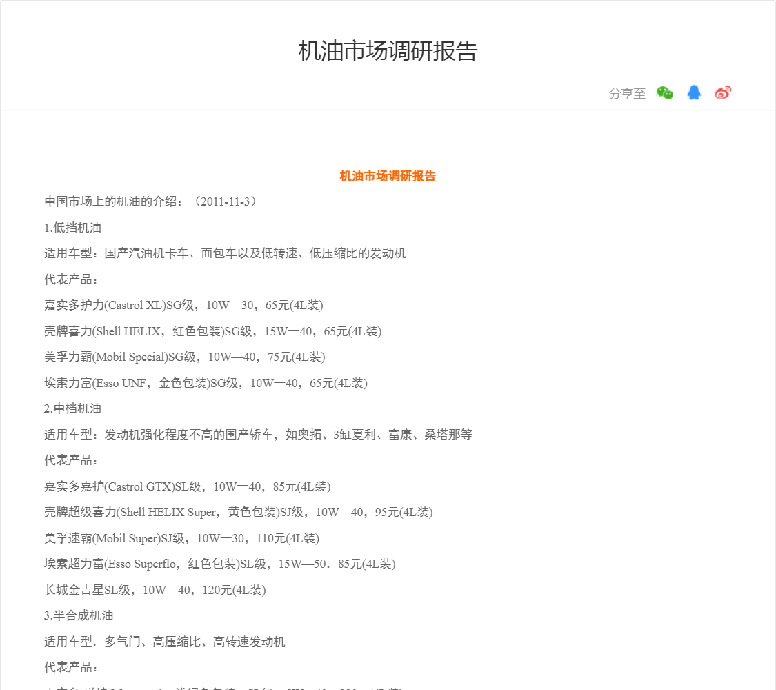 适用车型:国产汽油机卡车、面包车以及低转速、低压缩比的发动机 代表产品: 嘉实多护力(Castrol XL)SG级,10W—30,65元(4L装) 壳牌喜力(Sh...