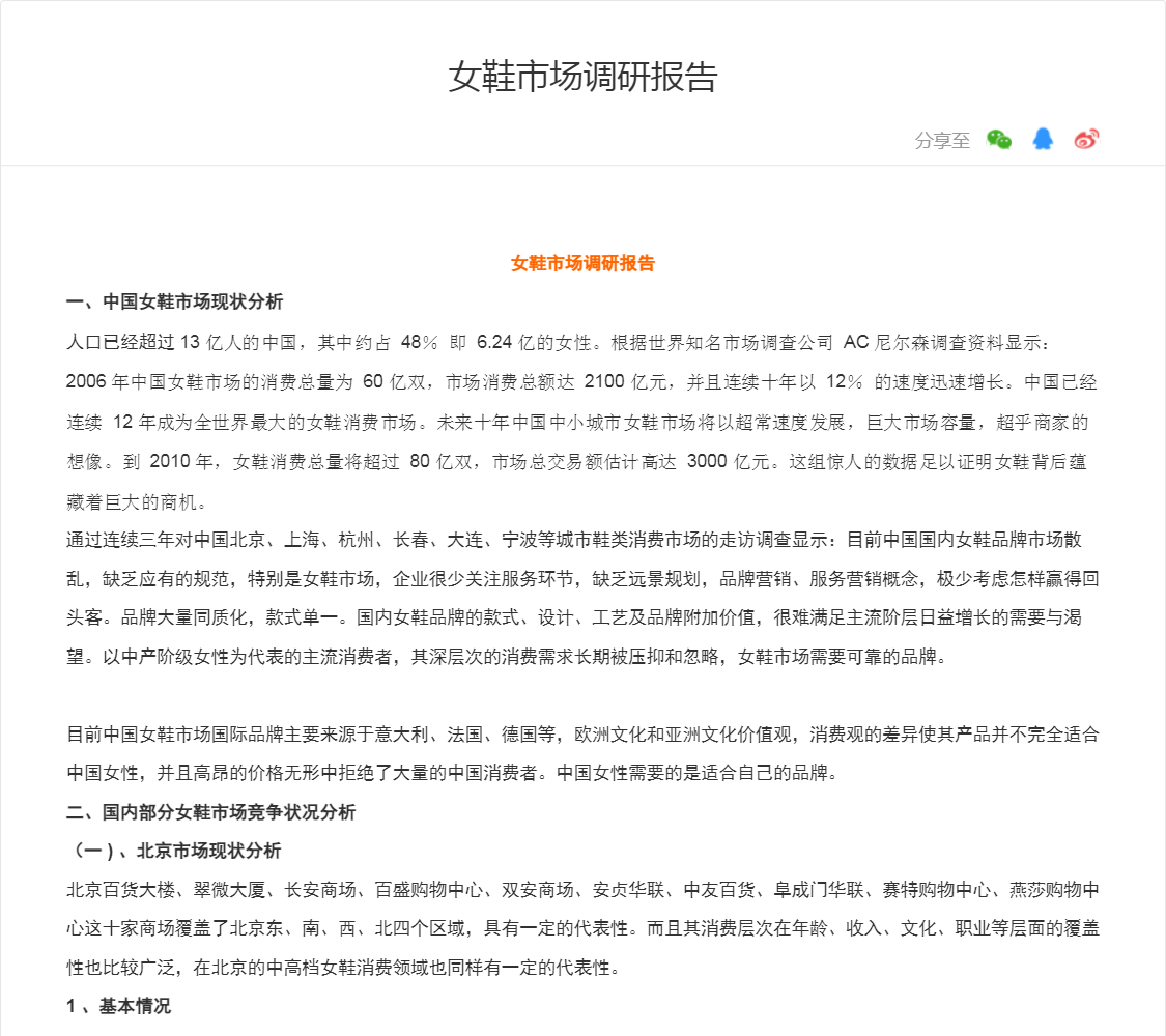 人口已经超过 13 亿人的中国,其中约占 48% 即 6.24 亿的女性。根据世界知名市场调查公司 AC 尼尔森调查资料显示: 2006 年中国女鞋市场的消费总量为 60 亿双,市场消费总额达...