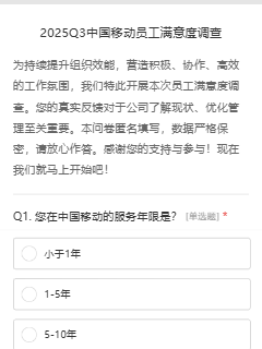 2025Q3中国移动员工满意度调查