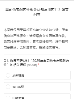 奥司他韦耐药性相关认知与用药行为调查问卷