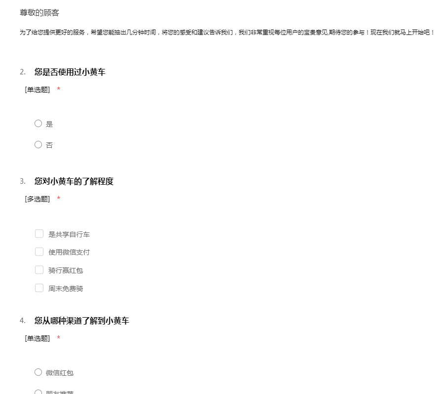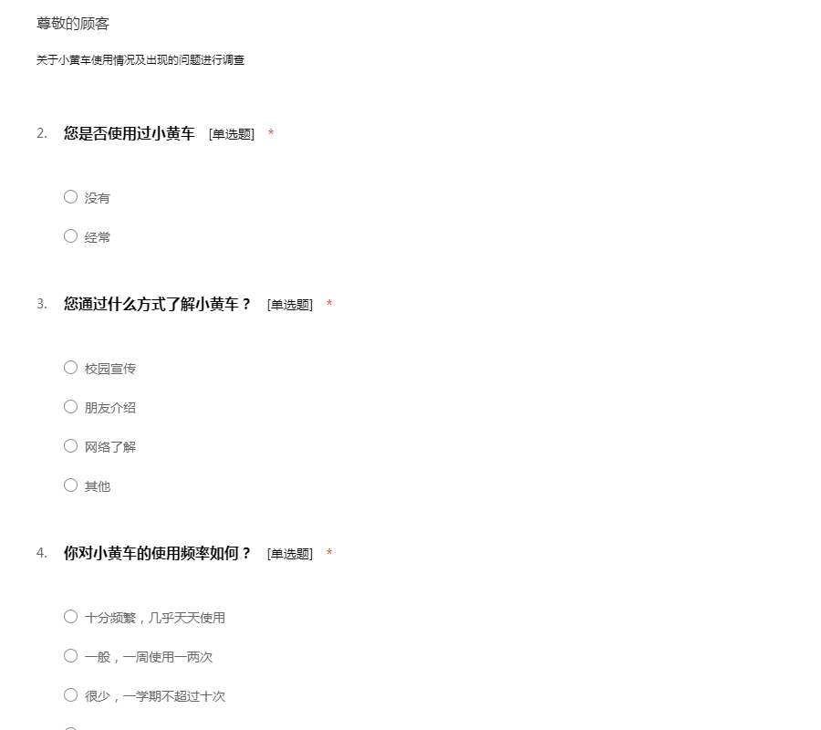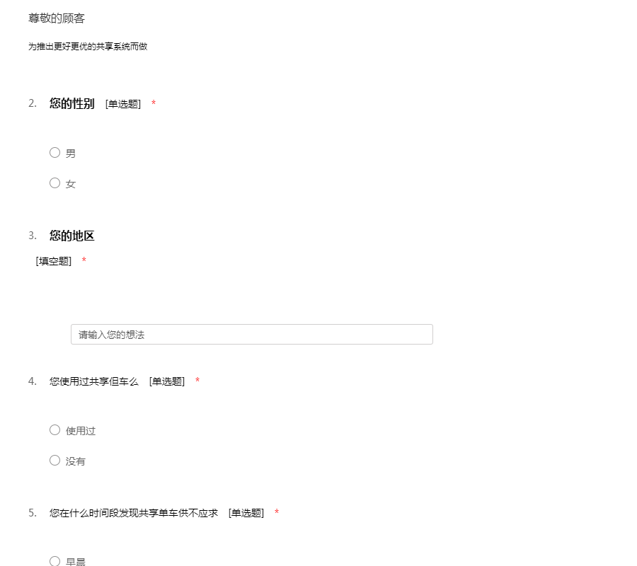 关于共享单车的问卷调查