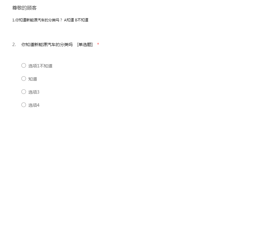 1.你知道新能源汽车的分类吗? A知道 B不知道