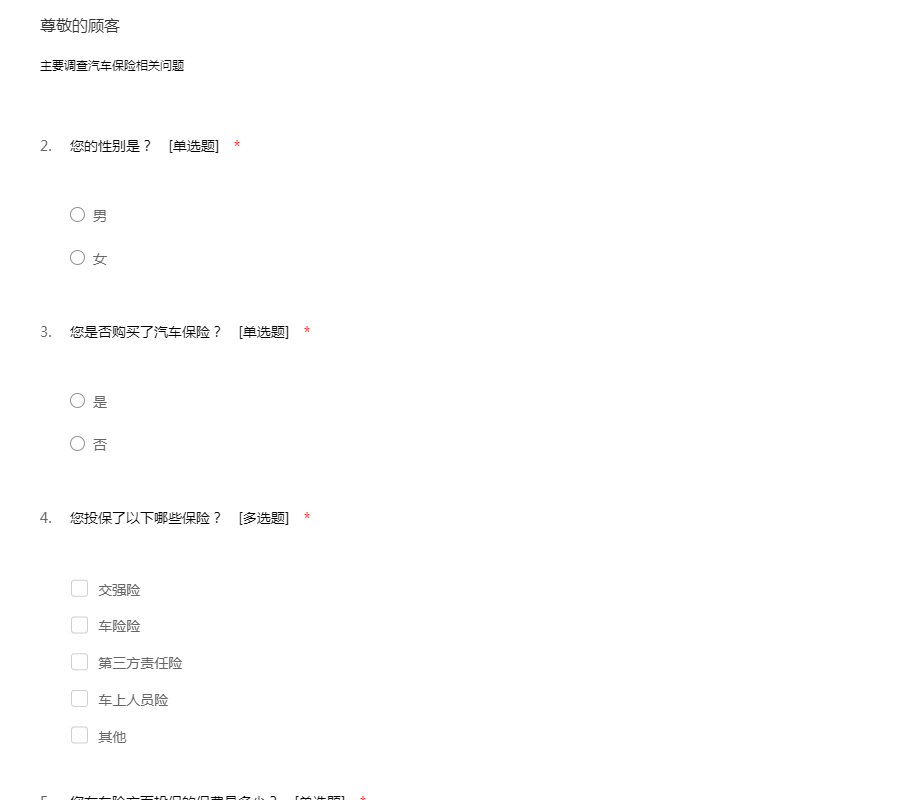 主要调查汽车保险相关问题