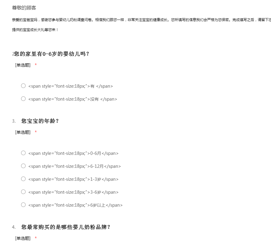 此次婴儿用品市场调查问卷仅用于数据分析,纯不会透露大家的隐私。婴儿用品市场调查问卷由51调查网(http://www.51diaocha.com)提供。