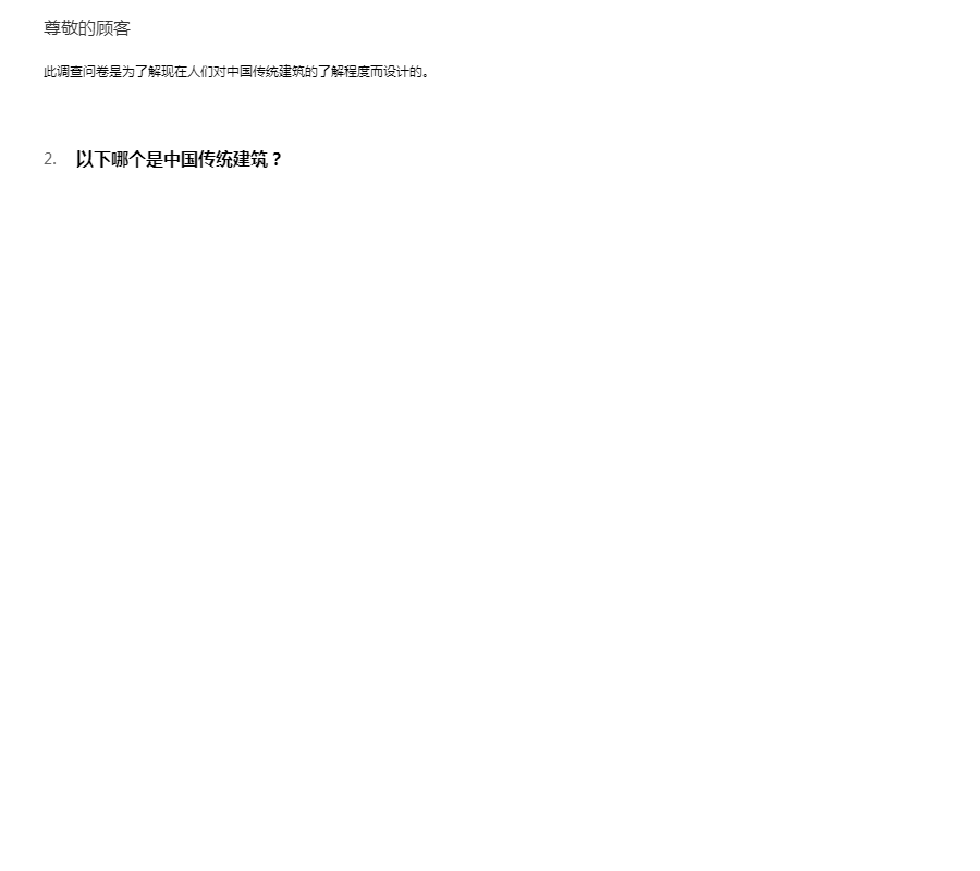 此调查问卷是为了解现在人们对中国传统建筑的了解程度而设计的。