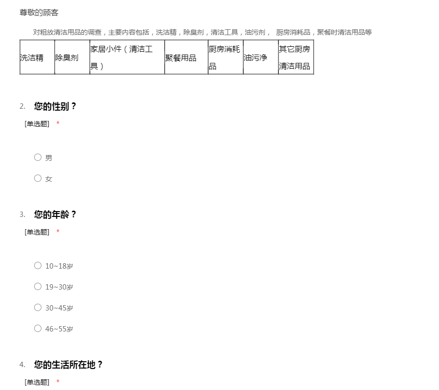 本次厨卫用品消费者市场调查问卷主要是了解消费者对厨卫用品品牌、功能、价格等方面的问题。厨卫用品消费者市场调查问卷模板是由我要调查网(http://www.51diaocha.com)提供。