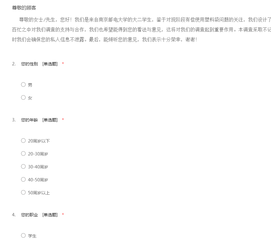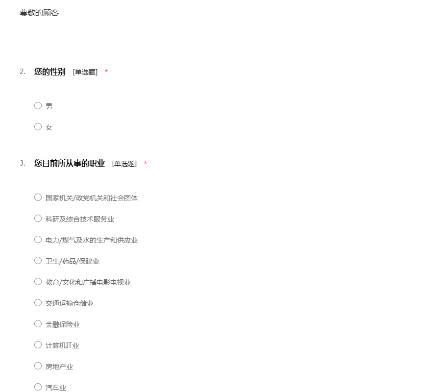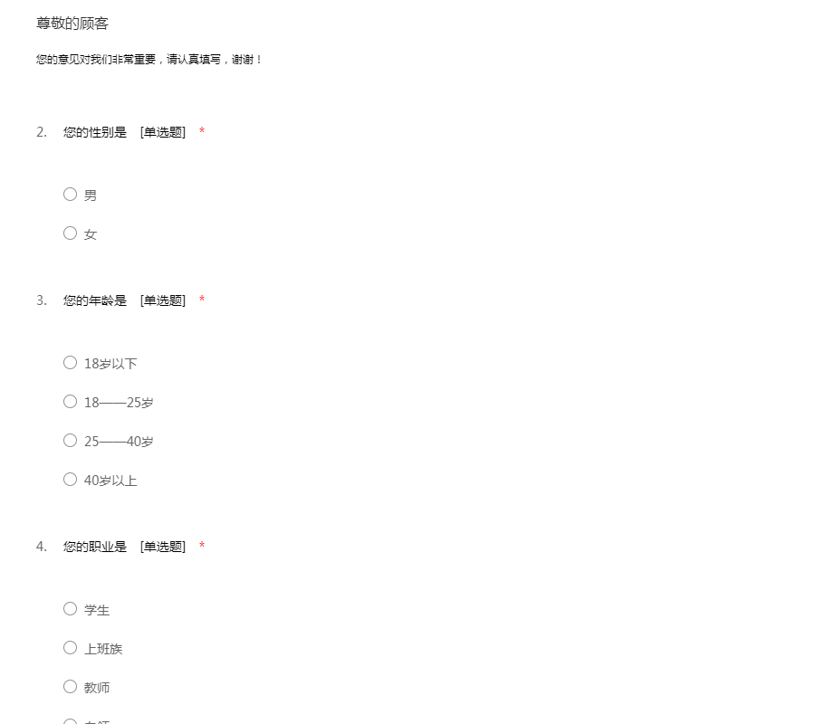 尊敬的先生/女士:您好! 近几年,实体店面对电商的竞争和分流连连败退,将AR技术充分运用到实体店中,让消费者感受到虚拟与现实相结合的特殊的购物体验,不得不说这是一项可以让实体店在低潮6年后,重新崛起的新兴技术。该问卷旨在调查大众对AR技术的了解情况和AR技术引入实体店的可行性。感谢您在百忙中抽出宝贵的时间填写本问卷。 ※增强现实技术(Augmented Reality,简称AR)是一种实时地计算摄影机影像的位置及角度并加上相应图像、视频、3D模型的技术,这种技术的目标是在屏幕上把虚拟世界套在现实世界并进行互动。