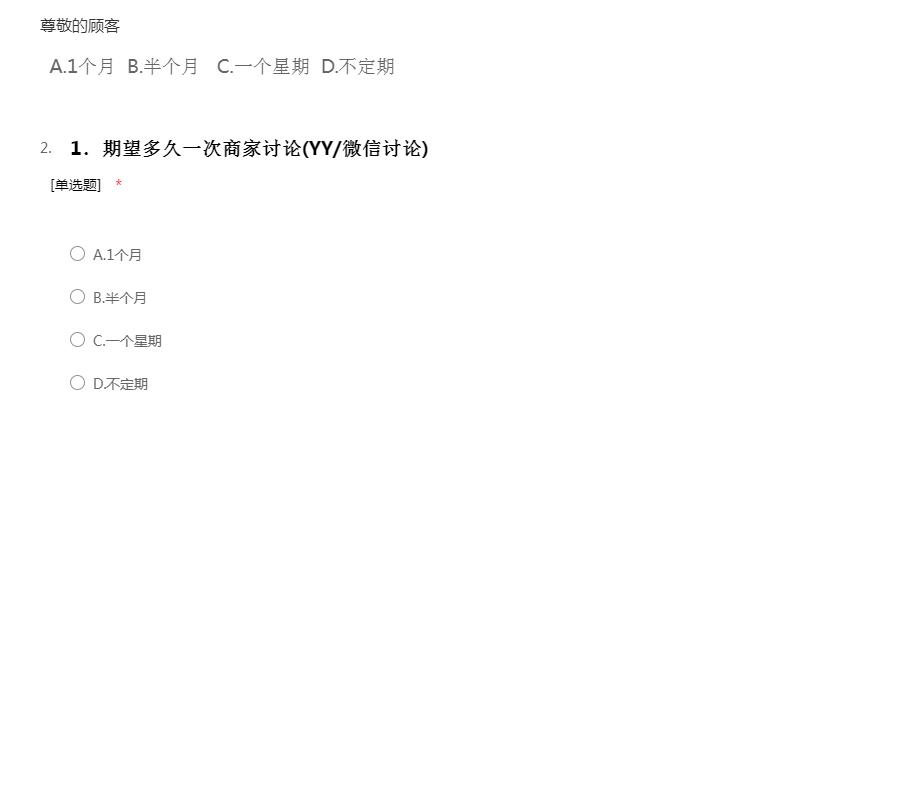 期望多久一次商家讨论(YY/微信讨论)