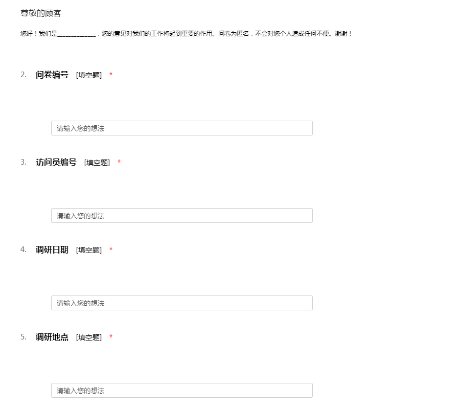 您好!我们是______________,您的意见对我们的工作将起到重要的作用。问卷为匿名,不会对您个人造成任何不便。谢谢!