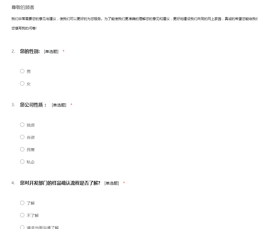 我们非常需要您的意见与建议,使我们可以更好的为您服务。为了能使我们更准确的理解您的意见和建议,更好地建设我们共同的网上家园,真诚的希望您能给我们准确、认真、如实、完整的信息反馈,非常感谢您填写我的问卷!