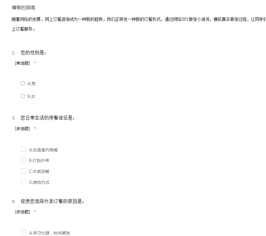 外卖商户调查问卷