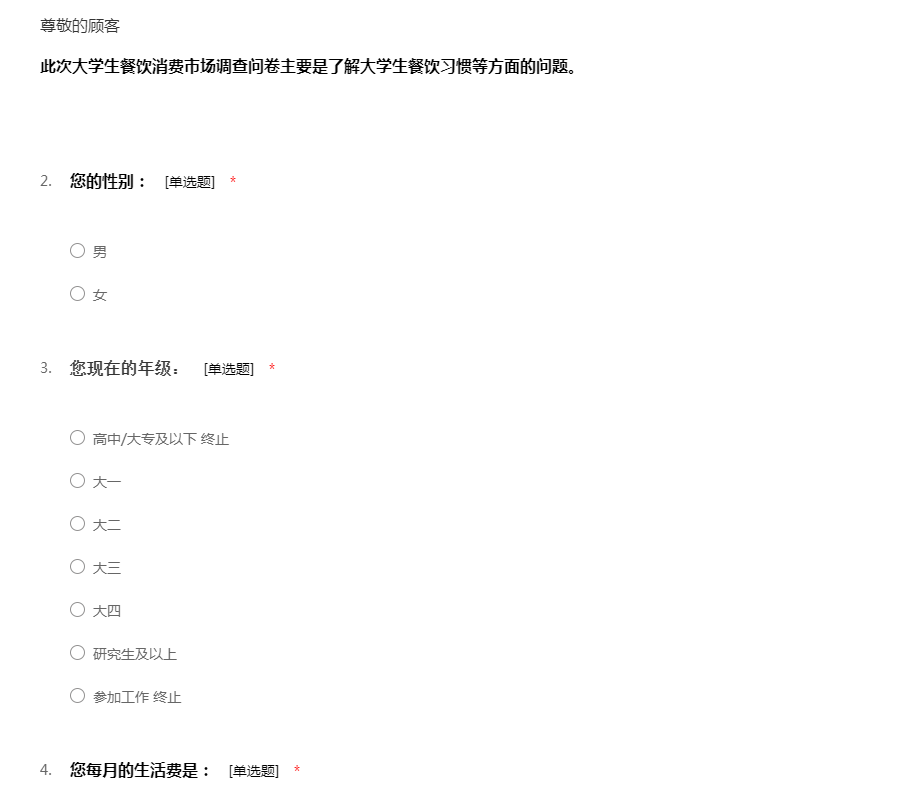 大学生餐饮消费调查问卷