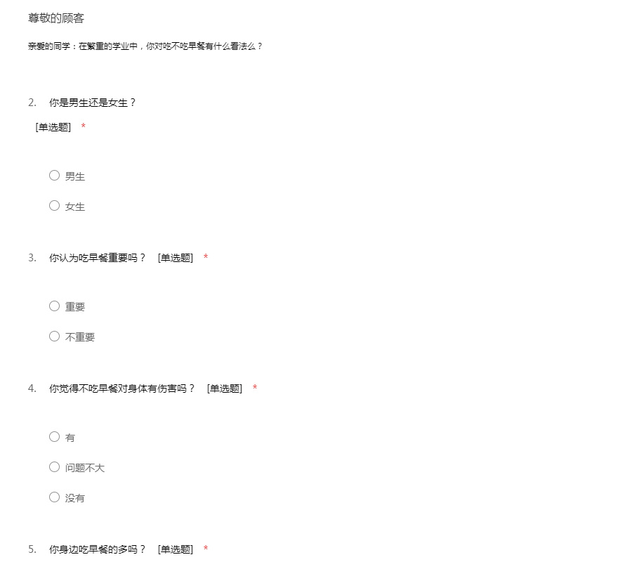 大学生早餐情况调查问卷