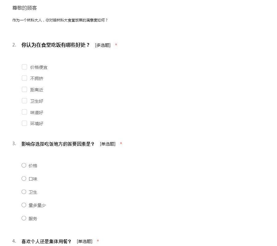 西安科技大学食堂的满意度调查问卷