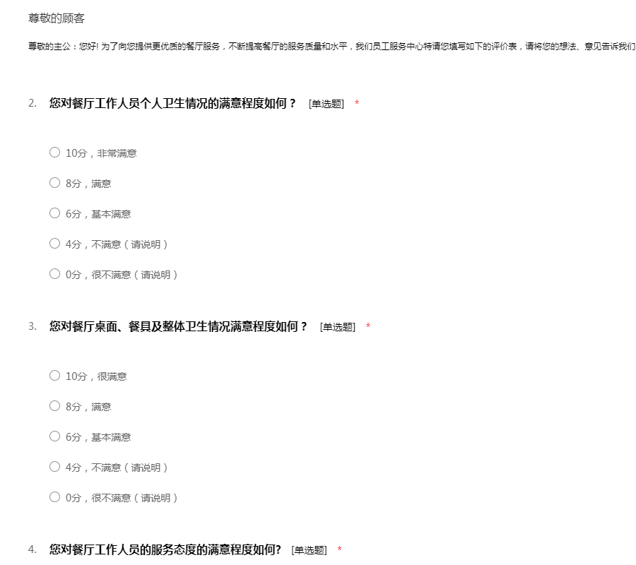 餐饮满意度调查问卷