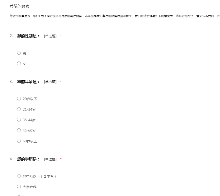 SC餐厅问卷调查