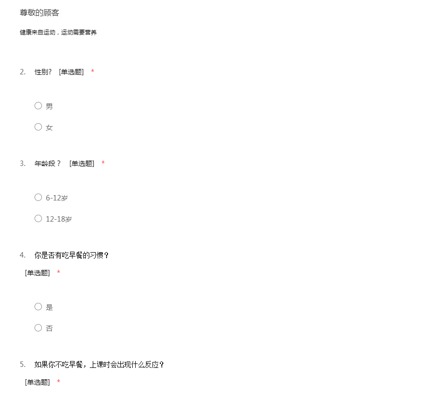 中小学生营养早餐问卷调查