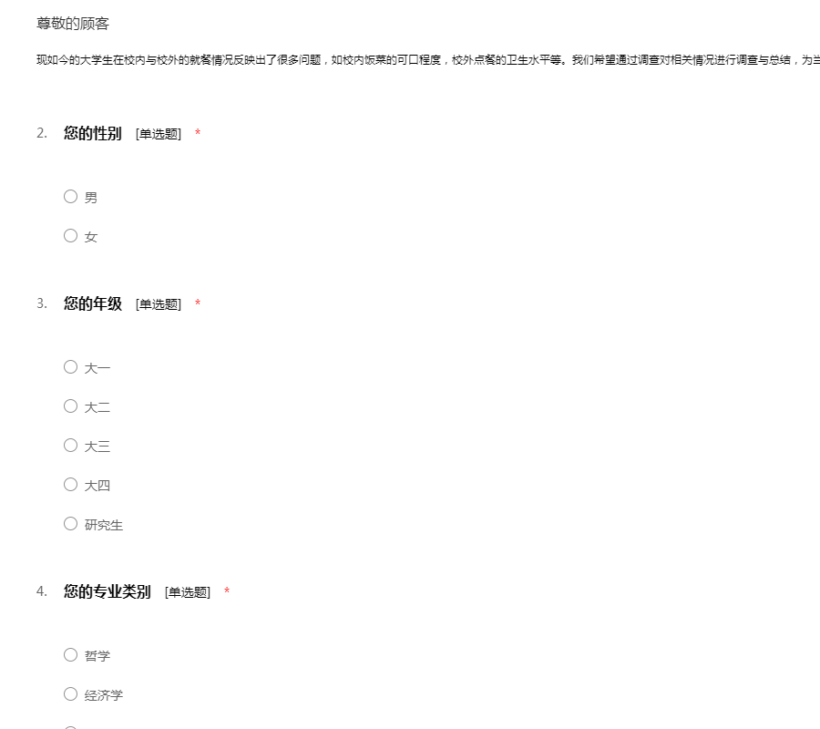 您好!请帮忙回答下这份午餐营养调查问卷!谢谢!