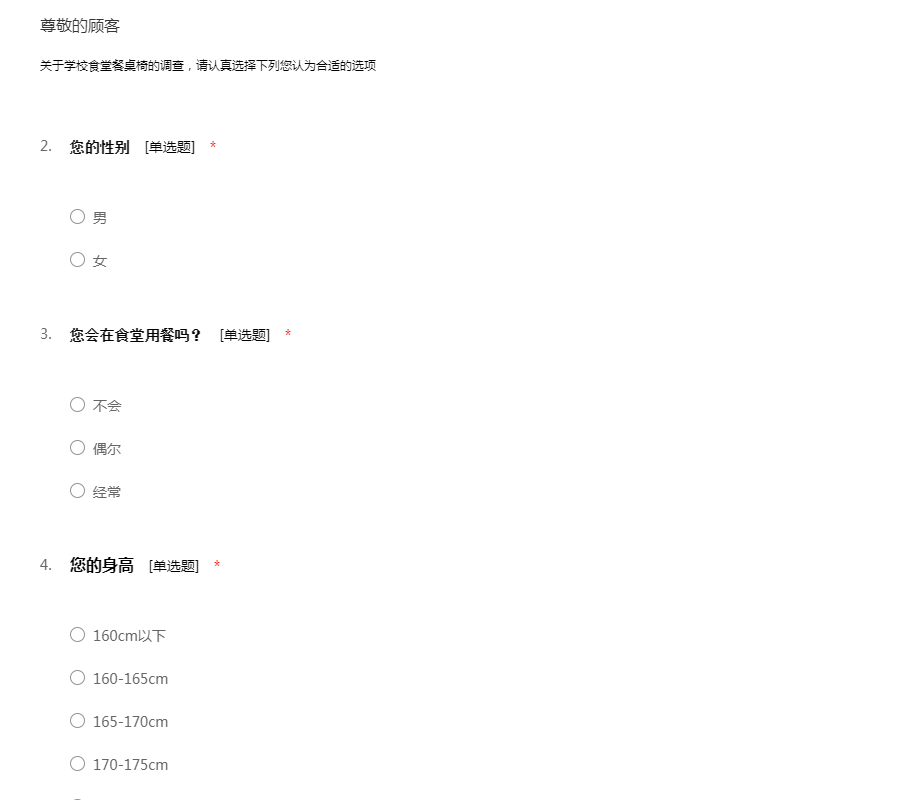 学校食堂餐桌椅的调查问卷