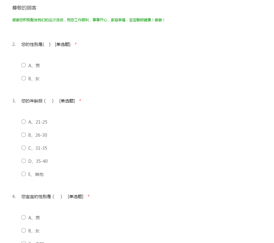 感谢您积极配合我们的这次活动,祝您工作顺利,事事开心,家庭幸福,宝宝聪明健康!谢谢!