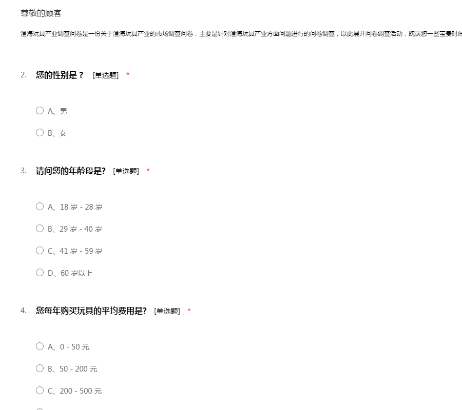 澄海玩具产业调查问卷