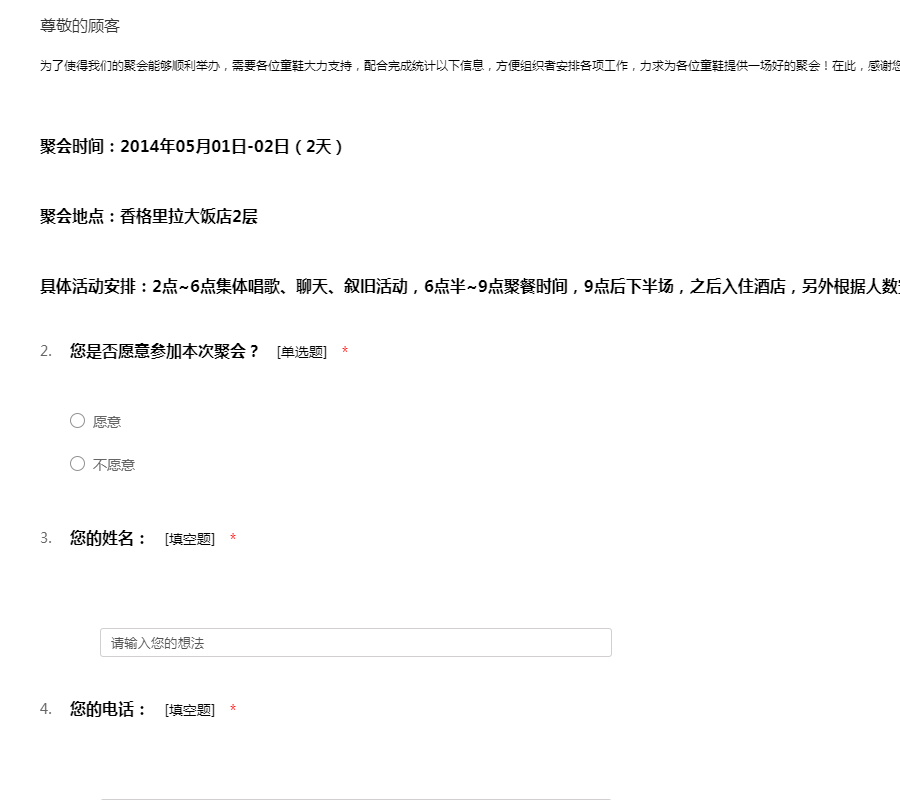 聚会报名表