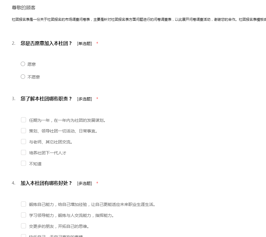 社团调查问卷