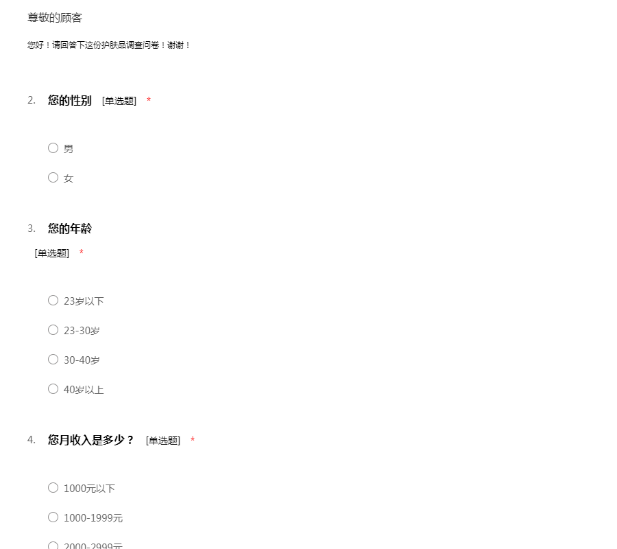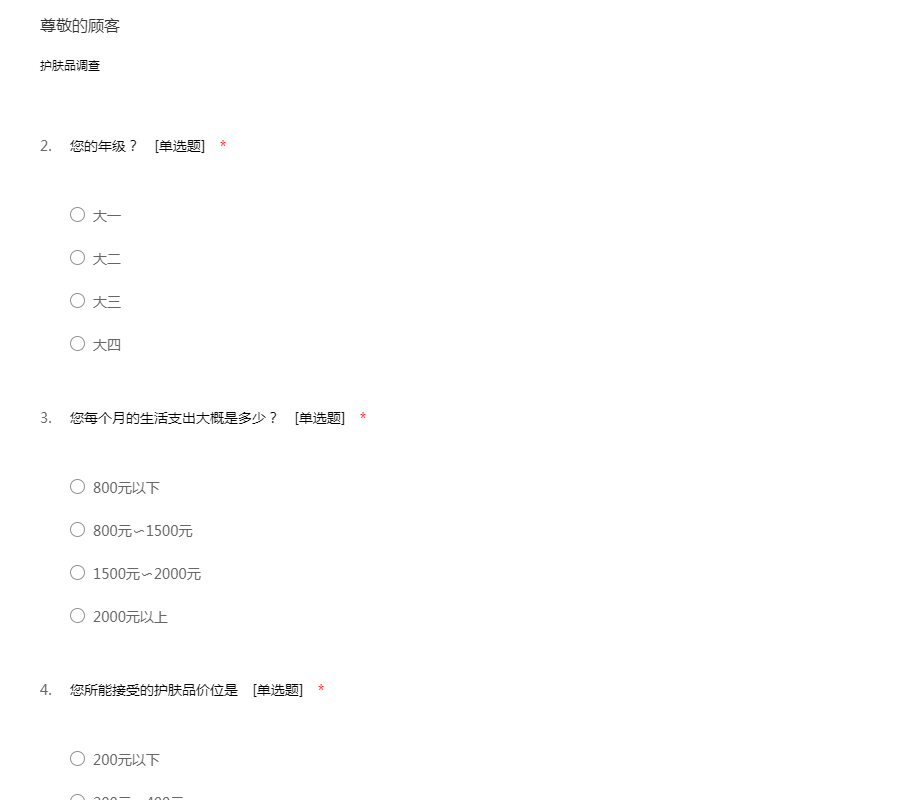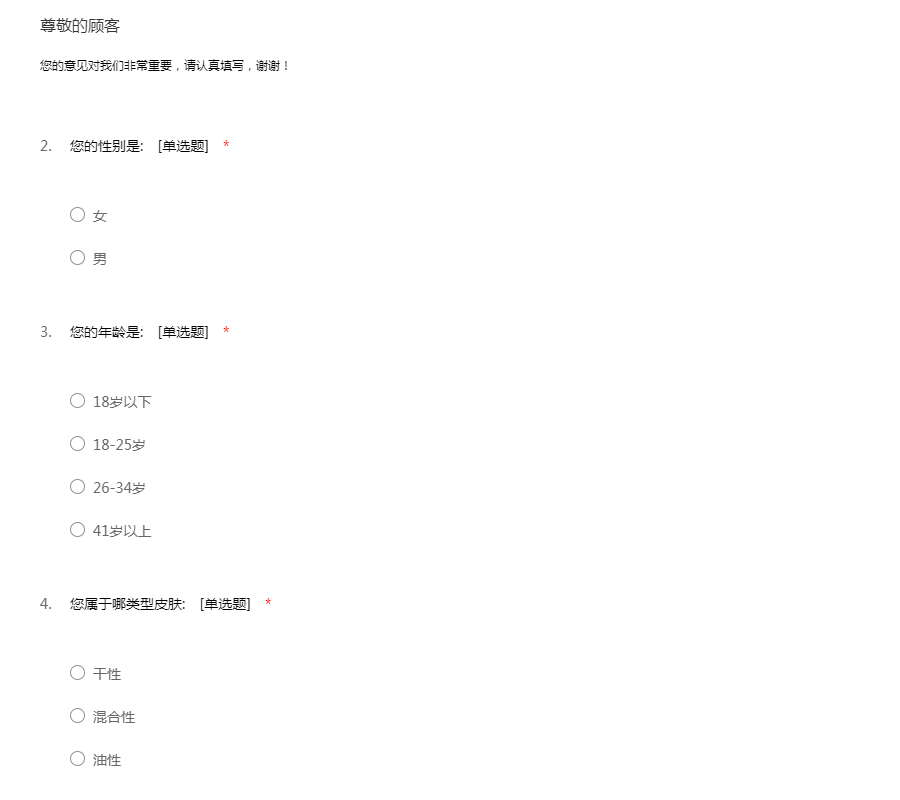 护肤品调查问卷